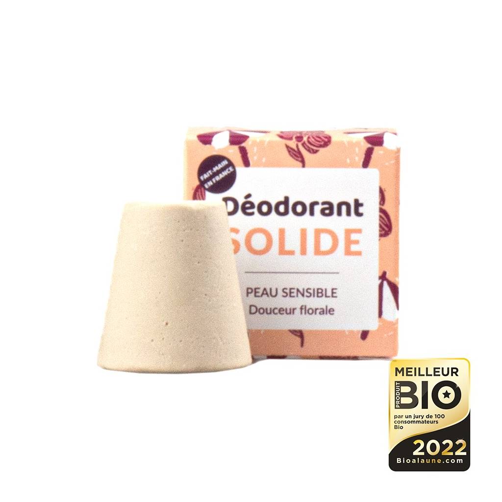 Bio-zertifiziertes festes Deodorant mit Blumenduft ohne Bikarbonat oder ätherisches Öl für die empfindlichste Haut.