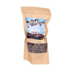 Köstliche, gepuffte Müslibällchen, überzogen mit dunkler Schokolade und Hibiskuspulver – 150 g