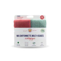 Set mit 2 ökologischen Tüchern: 1 grünes und 1 koralle als Ersatz für Ihre synthetischen Mikrofasern.