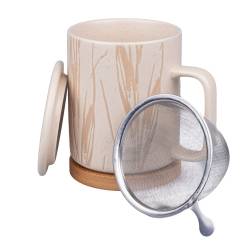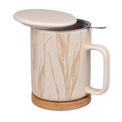 Materialien: Teebereiter aus Steinzeug, Edelstahlfilter und Bambussockel.