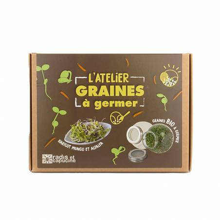 Learn how to germinate your own ORGANIC seeds with this complete kit. In addition, the little guide included in the box gives you two recipes for cooking your seeds. Eating sprouted seeds is a simple way to eat healthily. This box also has a playful side that will certainly appeal to your children. You can germinate the seeds with them, so they can see the progress of germination and taste these seeds once germinated. p>