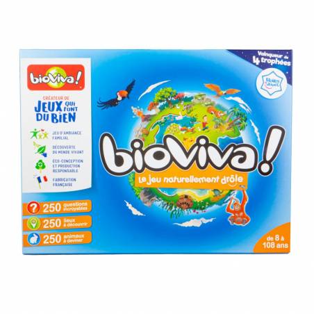 With this Bioviva board game, set off to discover the wonders of nature and the incredible diversity of life on Earth. This family game is played from 8 to 108 years old and combines unusual questions and answers about nature with fun challenges. Family evenings full of laughter guaranteed thanks to this must-have game.