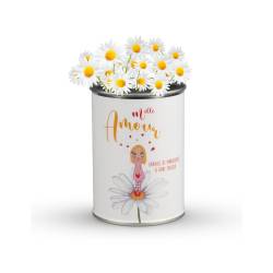 Kies dankzij Mademoiselle Amour voor originaliteit met deze madeliefjezaden om te kweken. Het komt in de vorm van een blikje en bevat een klein schijfje turf, gewoon openen en water geven om deze prachtige madeliefjes te zien ontkiemen. Zaaien kan van maart tot april, en zodra de kieming is voltooid, kunt u de sterkste planten nemen en deze in de grond of in een grotere pot verplanten. Dit zorgt voor een betere ontwikkeling van uw bloemen.