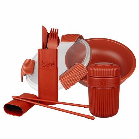 Alles verpakt in een klein, licht, mobiel en slim etui. Duurzaam en handig, ideaal voor wandelingen, reizen en zelfs werk. Deze set is uiteraard gemaakt in Frankrijk van biogebaseerde materialen. Hij is zeer licht en compact, past in elke tas en is geschikt voor alle gerechten die je wilt eten: sushi, yoghurt, salade, enz.