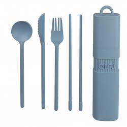 Alles verpakt in een klein, licht, mobiel en slim etui. Duurzaam en handig, ideaal voor wandelingen, reizen en zelfs werk. Deze set is uiteraard gemaakt in Frankrijk van biogebaseerde materialen. Hij is zeer licht en compact, past in elke tas en is geschikt voor alle gerechten die je wilt eten: sushi, yoghurt, salade, enz.