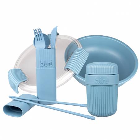 Ga op avontuur, naar kantoor of in de buitenlucht in stijl met de lichtblauw picknickbox, ontworpen voor liefhebbers van praktische, duurzame en elegante maaltijden. Deze box bevat alles wat je nodig hebt om te lunchen waar en wanneer je maar wilt.