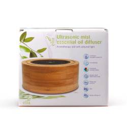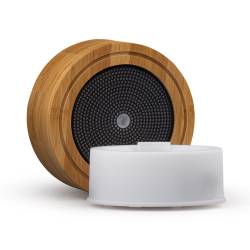 Deze diffuser is gemaakt van bamboe en metaal en maakt gebruik van ultrasone diffusietechnologie om je essentiële oliën te vernevelen.