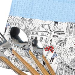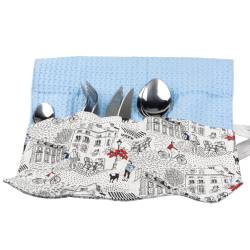 Deze katoenen bestekset is ideaal om je bestek mee te nemen naar je werk of op een picknick. Het heeft 4 vakken om een vork, mes en lepels in te doen en een iets groter vak om een kleine handdoek in te doen. Door deze slimme opstelling kunt u uw bestek gemakkelijk opbergen maar ook beschermen tijdens transport. Daarnaast is deze set eenmaal uitgevouwen ook te gebruiken als placemat tijdens je maaltijd. Hierdoor eet je waar je ook bent op een schoon en hygiënisch oppervlak.