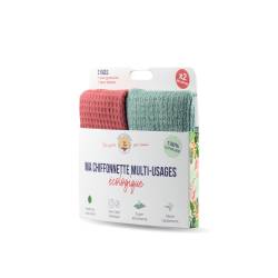Set van 2 ecologische doeken: 1 groene en 1 koraal ter vervanging van je synthetische microvezels.