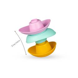 Deze 6 kopjes genummerd van 1 tot 6 kunnen in alle vormen op elkaar worden gemonteerd. Ze vormen van jongs af aan een zeer goed constructie- en reflectiespel. Er zijn meerdere combinaties mogelijk om te leren stapelen, over te dragen, in elkaar te zetten en vertrouwd te raken met getallen.