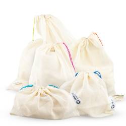 Met deze set van 9 biologisch katoenen zakjes, geen wegwerpzakjes meer om je groenten in te doen.